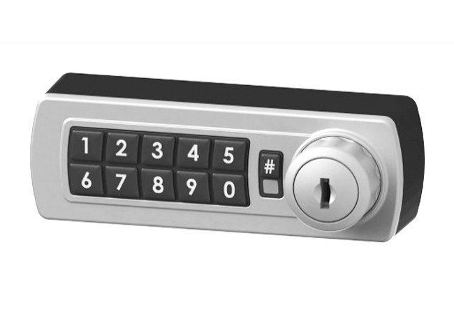 Description - Euro-Locks Gemini 3700 electronic combination lock for cabinets (board max. 8.5 mm or max. 20.5 mm), silver, left