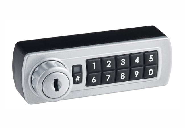 Description - Euro-Locks Gemini 3700 electronic combination lock for cabinets (board max. 8.5 mm or max. 20.5 mm), silver, right