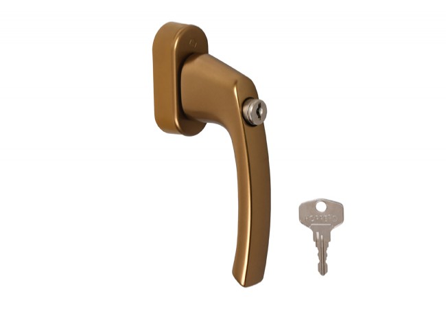 Description - Flensburg F4 window handle with key/antique gold
