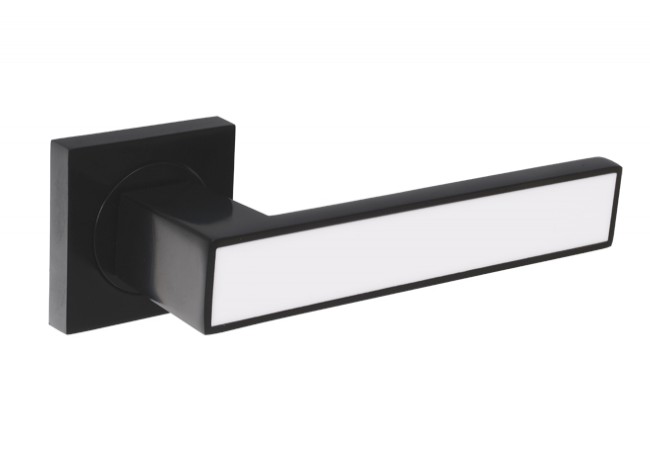 Description - GABI door handle, square rosette, black/white