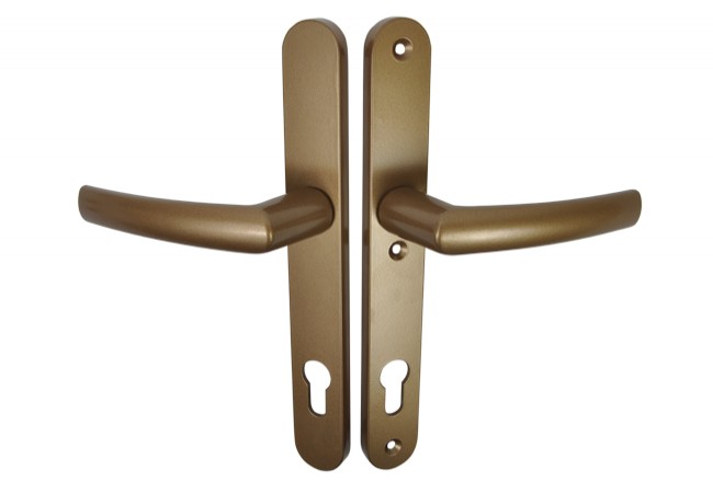 Klamka ze wspomaganiem na długim szyldzie. Staranność wykonania. Nowoczesny design. Oś klamki/wkładki [mm]: 92. Szerokość szyldu [mm]: 32.