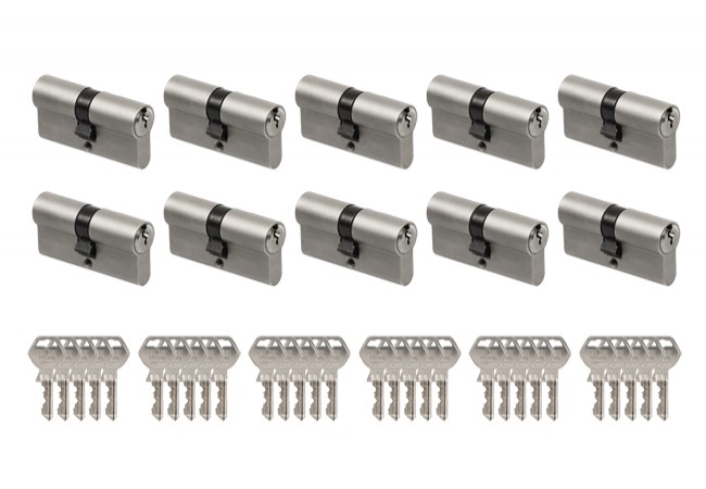 GEGE Ap1500 cylinder system with a common key - 1 key (10 cylinders 30/30, 30 keys in total), nickel, class 4 D