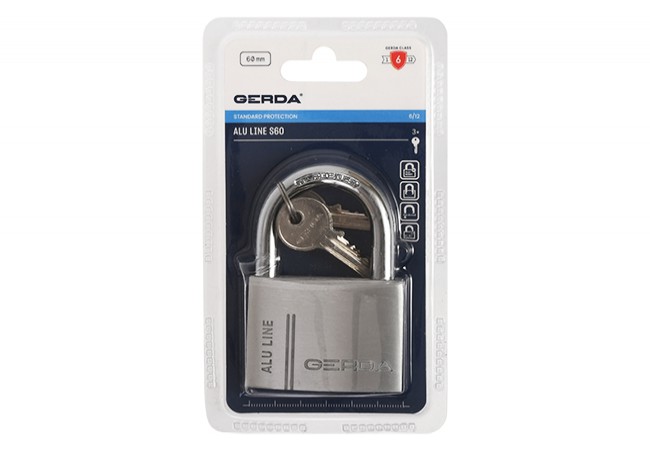 Gerda ALU LINE KAP S60 aluminum shackle padlock, blister