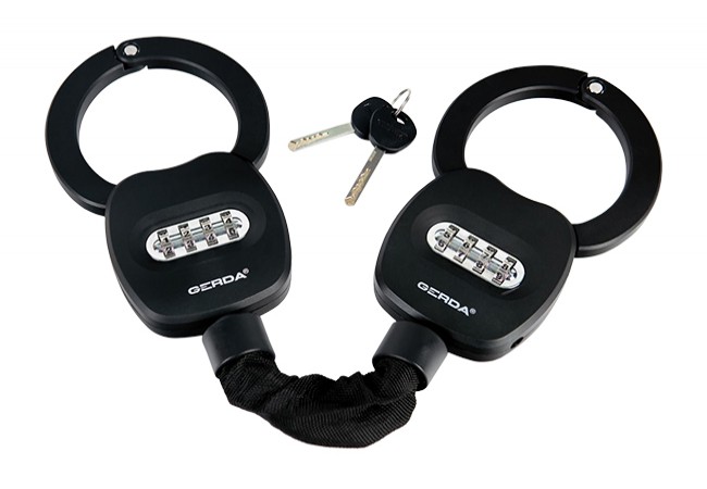 Zapięcie kajdanowe GERDA E-SCOOTER CUFF 480/75U na 4 cyfrowy szyfr z funkcją awaryjnego przywracania kodu otwierania za pomocą klucza, czarny