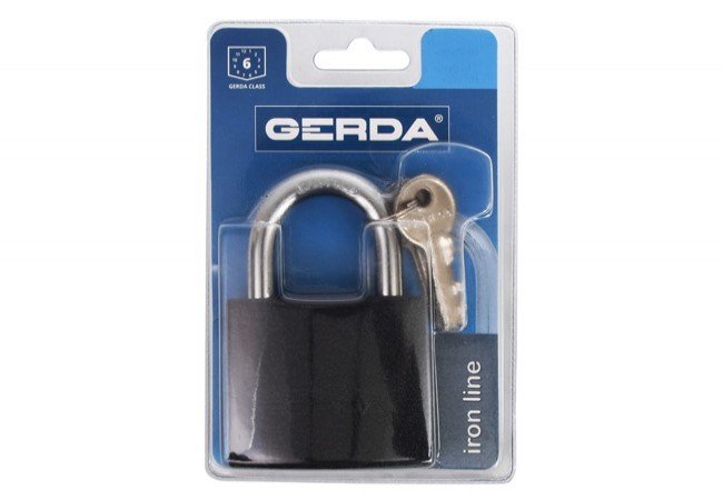 GERDA IRON LINE KZZS S60 black cast iron latch padlock, 3 keys, blister