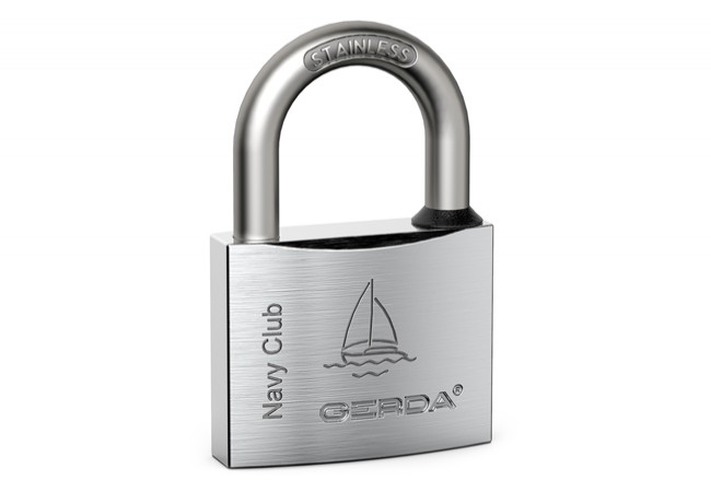 Description - Gerda NAVY CLUB (KCNP) 50mm Shackle Padlock, Stainless Steel, Blister Pack
