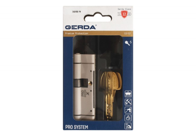 Description - Gerda PRO System X 35/50 cylinder insert, variant AB, 2 assembly keys, satin nickel, box