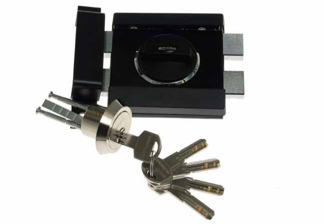 Equipped with two massive bolts and a very durable case. A special hardened plate is use