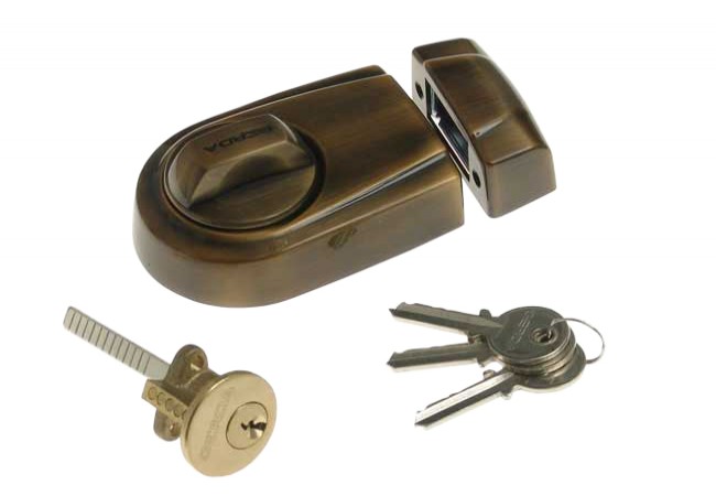Gerda ZG 100 rim lock, antique brass, 3 cut keys