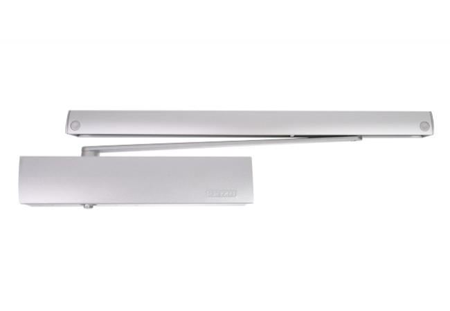 Description - GEZE TS 5000 ECline door closer (EN 2-5, door leaf up to 1250 mm) with rail and lock, silver