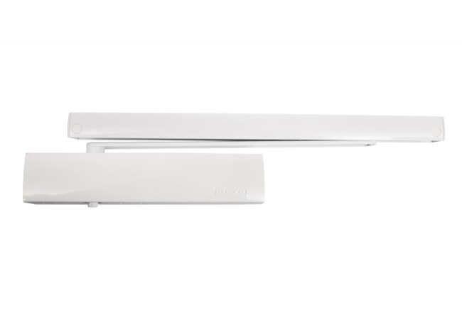 Description - GEZE TS 5000 ECline door closer (EN 2-5, door leaf up to 1250 mm) with rail and lock, white