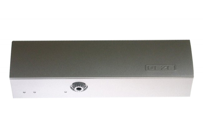 Surface oor closer of GEZE. Suitable for both right and left doors. Installation on the hinge side or opposite to the hinge. It has the additional function of damping opening.
