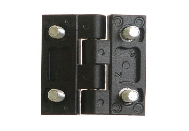 Hinge 40x40 with 4 M5 threads, thickness 5 mm, black color, stainless steel pin