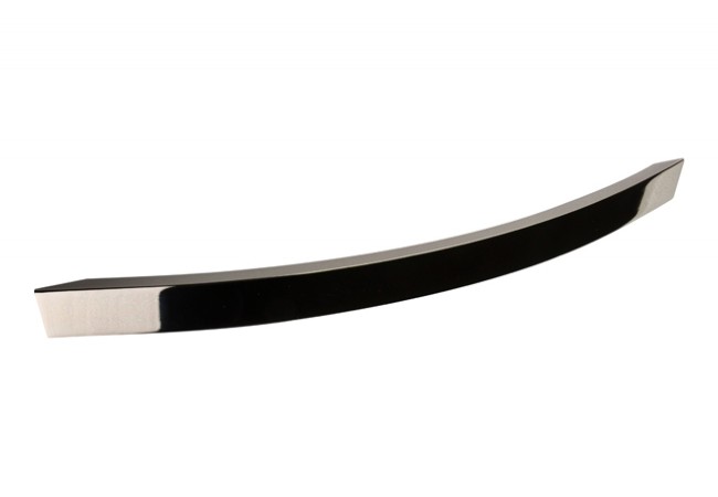 Srebrne, błyszczące wykończenie z czarną wstawką.