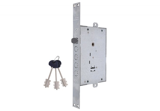 Zamek wpuszczany przeznaczony do drzwi zewnętrznych o masie do 200 kg, polecany w szczególności do budynków użyteczności publicznej.