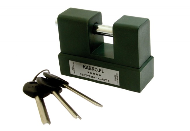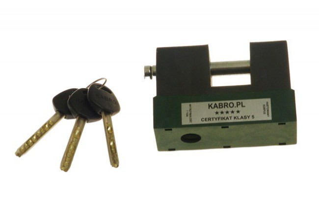 Stalowa kłódka KABRO C5 wyróżnia się dużą wytrzymałością mechaniczną. W szczególności duża jest wytrzymałość na wyciągnięcie lub wypchnięcie przetyczki wzdłuż osi (ponad 20kN, czyli ok. 2000kG). Dla porównania wiele innych kłódek dostępnych na rynku o podobnej konstrukcji nie wytrzymuje sił wyrywających przetyczkę nawet rzędu 2-3 kN. Dzięki zastosowaniu hartowanego pancerza oraz hartowanej przetyczki nie da się jej przeciąć piłką do metalu. Dodatkowo w bębenku znajduje się 8 hartowanych elementów (kołki i kulki), które uniemożliwiają rozwiercenie. Konstrukcja mechanizmu bębenkowego i klucza zapewniają dużą ilość kombinacji oraz trudność otwarcia. Podczas prób w Laboratorium Kryminalistycznym KG Policji mechanizm ten nie został otworzony. Dodatkowym atutem jest duża trwałość kołeczków zastawkowych, uzyskana dzięki temu, że klucz nie współpracuje bezpośrednio z kołkami, lecz za pośrednictwem hartowanych kulek. Możliwe jest wykonanie kilku kłódek C5 lub C4U lub zamków KABRO 1H na wspólny klucz. Do krat zabezpieczających kancelarie tajne muszą być stosowane kłódki z certyfikatem klasy 5 (wg Dziennika Ustaw 208 z 2005 roku, poz 1741). Kłódka wymaga konserwacji. Najlepiej nadaje się do tego płyn WD 40. Nie należy oliwić gęstym olejem.