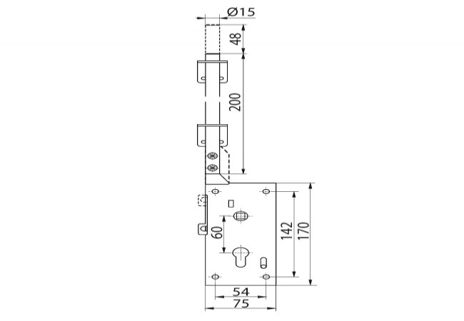 KASTEL-5 is designed for sectional garage doors, where a large bolt lever (approximately 48mm) is required. It is also used in hinged doors or entrance doors as additional protection. Locking the lock occurs after the handle has been moved and the tumbler