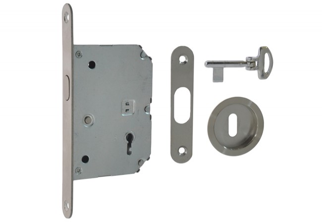 Key lock for sliding doors with a round handle, ?55, satin