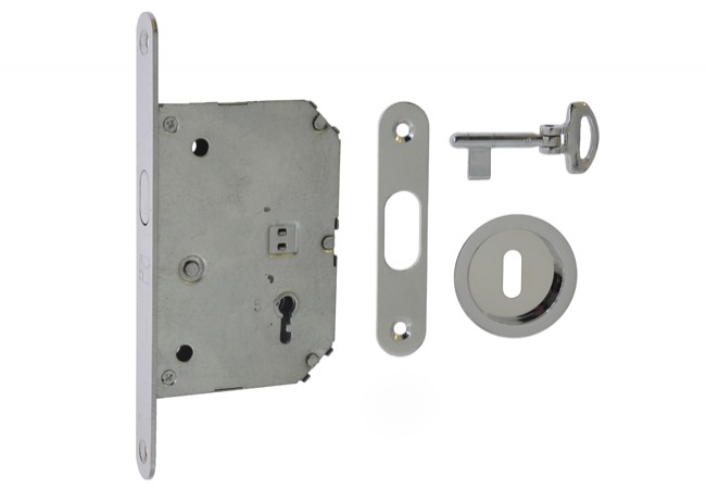 Description - Key lock for sliding doors with round handle, diameter 55, chrome
