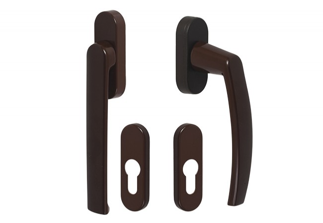 Klamka balkonowa Victory/ONYX/Pluton pod roletę, z kompletem rozet na wkładkę, brązowa (19280170045)