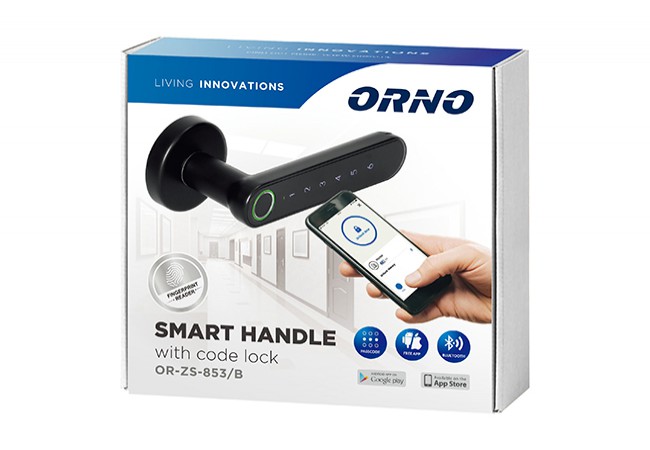 Description - Klamka drzwiowa elektroniczna ORNO (OR-ZS-853/B) PIN, Bluetooth, odcisk palca, czarna
