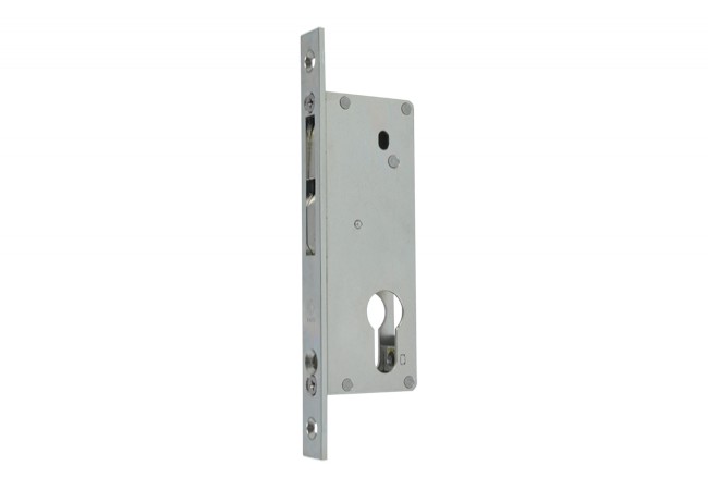 Zamek zasuwkowy do profili tworzywowych.Zasuwka opadająca. Uniwersalna stronność.