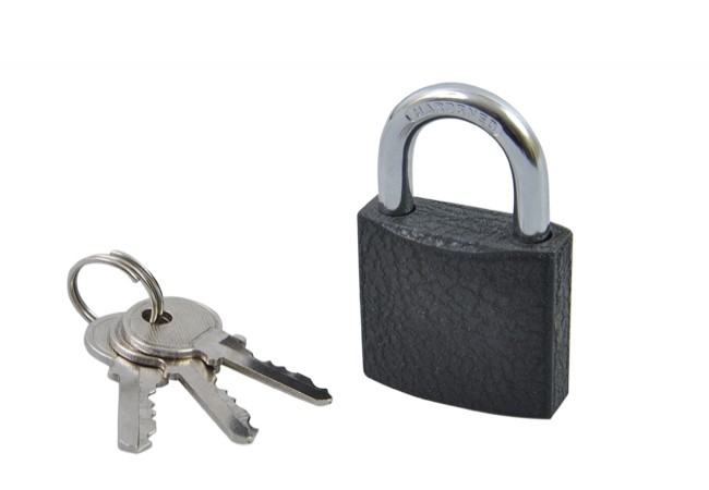Kłódka zatrzaskowa.Korpus wykonany z żeliwa. Blister.