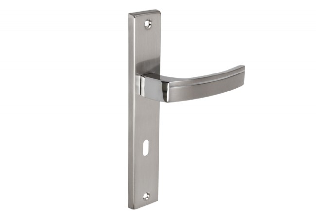 KUCHINOX PARVA key-operated door handle, 72 mm, on a long plate, chrome/satin nickel
