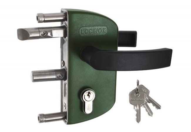 Locinox garden lock with polyamide casing and stainless steel mechanism. Equipped with a solid bolt for accurate and solid closing.