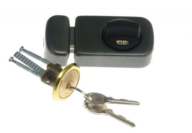 Bolt lock 50 mm, single-cylinder. Body and drawer of pressed steel sheet powder coated; other galvanic coatings on special order. Complete with 3 serrated keys cut. Lock designed for doors with a thickness of 32-64mm.