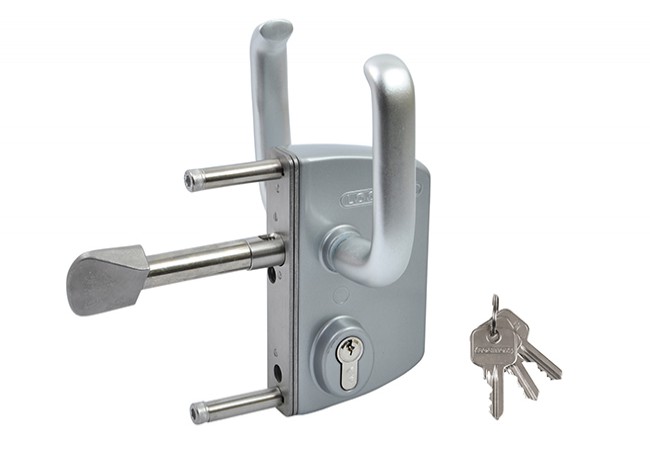 Locinox LSKZ lock for sliding gates, INOX mechanism, VSZ insert, aluminum handle, RAL 9010 (square profile 100x100)