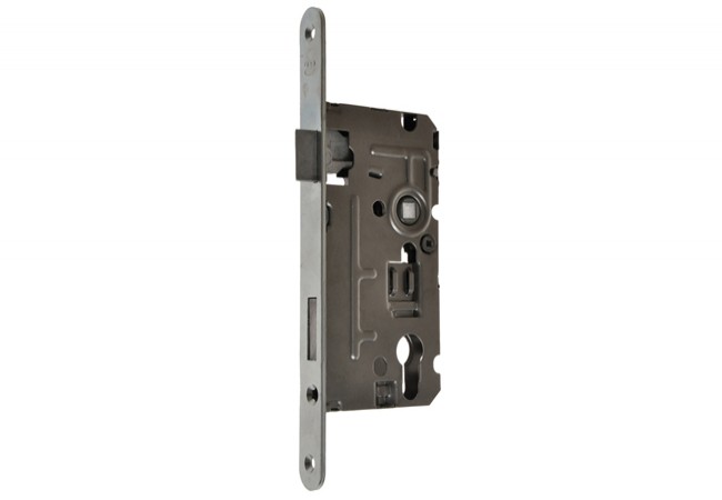 Cylinder latch-ratchet lock for left doors (weight up to 100kg), intended for public buildings, able to withstand 100,000 cycles b> when the latch is loaded with 10N force. Lock has a high corrosion resist