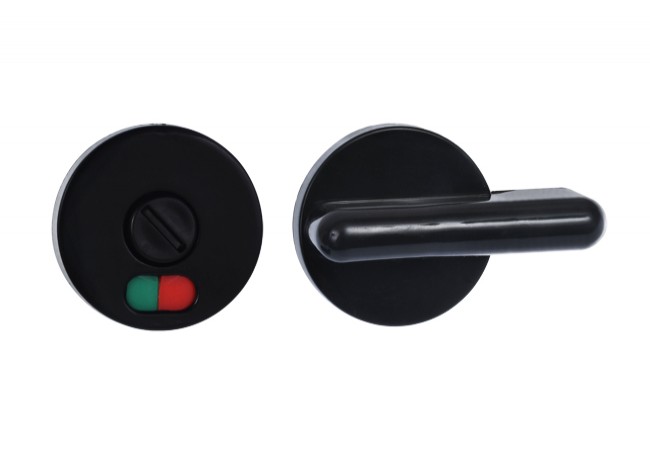 Zamek do kabin sanitarnych.Świetna trwałość i bezpieczeństwo.Kolor: czarny.