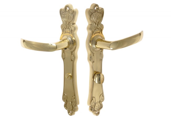 Długi szyld okraszony delikatnymi zdobieniami kwiatowymi, które pięknie rozświetlą Twoje mieszkanie. Błyszczące, acz wyważone wykończenie produktu sprawia, że będzie pasować do większości wnętrz w stylu glamour i vintage. Reliefy o złotym połysku przypadną do gustu wszystkim tym, którzy cenią wytworne i eleganckie przestrzenie. Naszym zdaniem produkt ten będzie prezentował się najpiękniej wraz drewnianymi skrzydłami drzwiowymi. Mosiężne klamki to synonim jakości - są bardzo trwałe, odporne na korozję i zmiany temperatur. Rękojeść klamki prezentuje się prosto i smukło, a dodatkowo zapewnia stabilny chwyt. Możliwość zamontowania uchwytu klamki po dwóch stronach tarczki. Dzięki temu nie musimy tracić czasu na samodzielne dobieranie lewej czy prawej strony produktu. Podana cena obejmuje klamkę na stronę zewnętrzną i wewnętrzną drzwi.