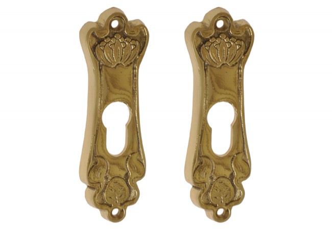 Ozdobny szyld drzwiowy który będzie stanowić znakomite dopełnienie skrzydeł wejściowych dworków i pałaców. Element występuje w kolorze złotym oraz patynie, dzięki czemu idealnie dopasujesz go do reszty okuć: klamek, zawiasów i akcesoriów wewnątrz pomieszczeń. Cechami, które zachęcają potencjalnych klientów są z pewnością atrakcyjny i elegancki wygląd, a także solidne wykonanie. Szyld ozdobny komponuje się perfekcyjnie z drewnianymi skrzydłami oraz tłoczonymi frontami Produkt powstał w 100% z mosiądzu, dzięki czemu cechuje się wysoką wytrzymałością mechaniczną. Rozeta wykazuje dużą odporność na czynniki atmosferyczne: wodę, promieniowanie, mróz. Posiada on otwór na wkładkę cylindryczną, która ma zapewnić pełnię ochrony naszej posiadłości. Ozdobny design dopasowany do klasycznych wnętrz, świetna jakość i bezkonkurencyjna cena.