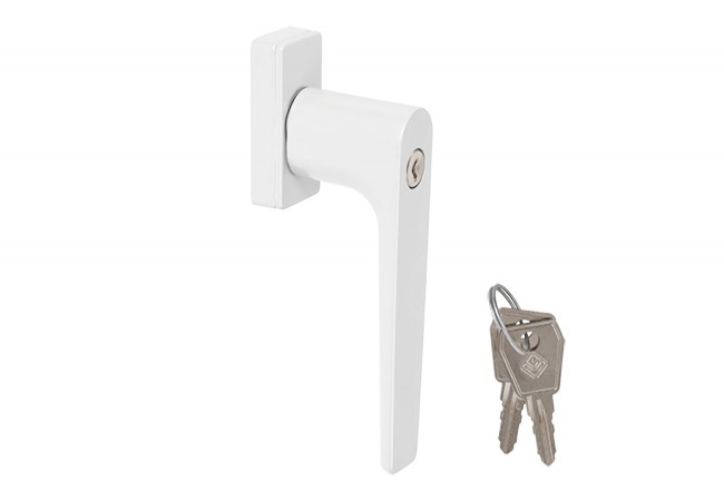 Description - Master Karma aluminum window handle with key, L-26 mm spindle, white (RAL 9016)