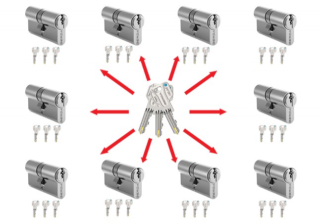 W skład systemu master key mogą wchodzić wkładki o różnych długościach, wkładki z pokrętłem, wkładki z funkcją bezpieczeństwa, wkładki do zamków nawierzchniowych, kłódki.