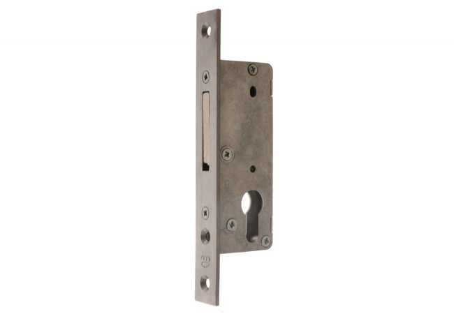 Ratchet, cylinder mortise lock for aluminum joinery.