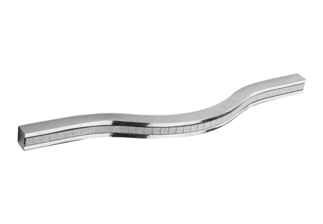 Srebrne uchwyty o falistym kształcie w stylu Glamour jeszcze bardziej podkręcą Twoją przestrzeń.