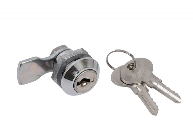 Zamek miniaturowy, krzywkowy od producenta STALNEY.Posiada osłonę zabezpieczającą przed przedostaniem się niechcianych zanieczyszczeń, do mechanizmu zamka.