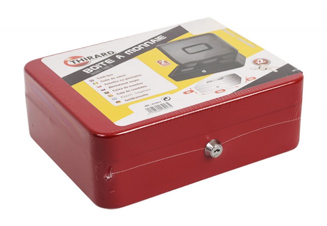 Description - MONEY TIME 3 cash box, 90x250x200 embossed steel, chrome handle, internal PVC coin compartment, 2 keys, red