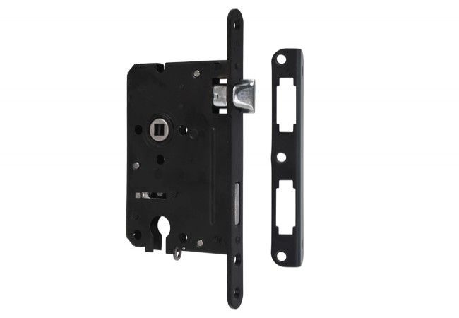 Mortise lock 72/60 cylinder with lever Metalplast-Częstochowa, black varnished, right
