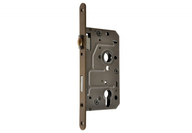 Mortise lock roller-cylinder 72/55 left Metalplast-Częstochowa, sand varnish, without striker