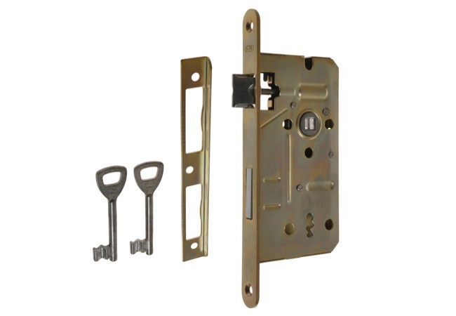 Description - Mortise lock with latch LOB 72/60, yellow galvanized