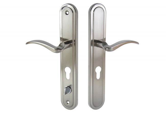 Klamka wąska do drzwi chińskich, strona prawa. Szyld podłużny o całkowitej długości 280 mm. Pokrycie: nikiel. Wykonana z bardzo wysokiej klasy materiałów, które odpowiedzialne są za jej wytrzymałość na uszkodzenia. Zapewnia długotrwałe użytkowanie i odporność na częste eksploatowanie.