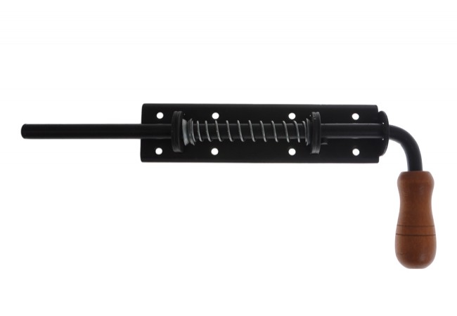 Zasuwa sprężynowa z drewnianym uchwytem w stylu rustykalnym.Malowana proszkowo na czarno.Szczegółowe wymiary w pliku PDF.