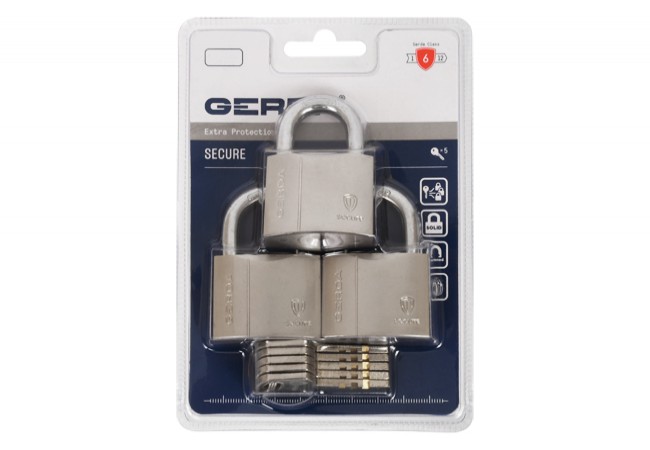 Description - Nickel-plated brass padlocks (3 pcs.) GERDA SECURE KSWS S40, keyed alike, 5 keys included, blister