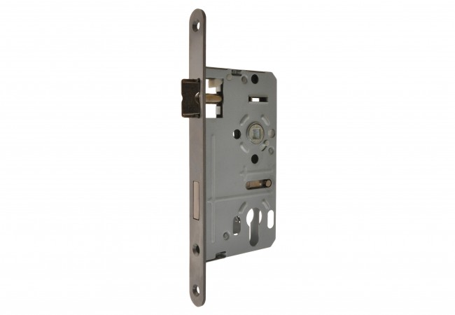 Mortise lock designed for wooden doors. Housing and front of the lock made of stainless steel, which protects the lock against possible corrosion. The lock is equipped with a double spring, which allows you to close the door without using the handle.