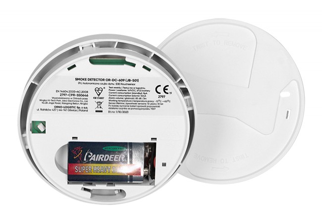 Description - ORNO battery-powered smoke detector, 9 V power supply, (OR-DC-609)