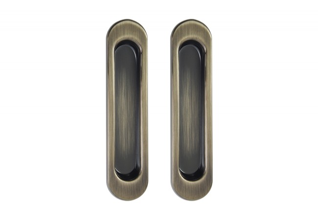 Oval recessed sliding door handle B-HARKO R003AB 151x35 mm, patina (2 pieces)